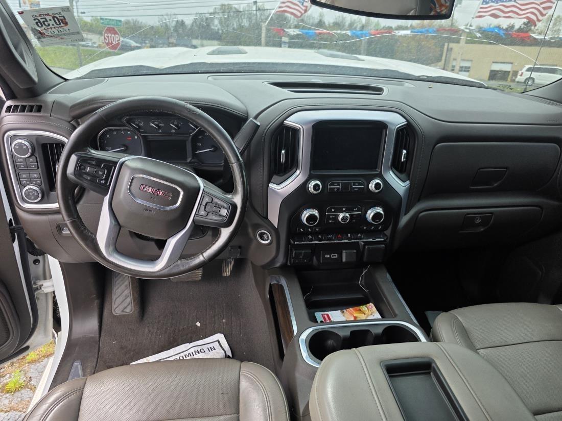 The 2019 GMC Sierra SLT is a full-size pickup truck that blends rugged performance with upscale comfort. It features a bold design with a distinctive chrome grille and LED lighting. Powered by a 5.3-liter V8 engine, it delivers robust performance, supported by an eight-speed automatic transmission. The Sierra SLT offers a smooth ride with its advanced suspension and adaptive ride control. Inside, it boasts a spacious, refined cabin with premium materials and state-of-the-art technology, including an 8-inch infotainment system with Apple CarPlay and Android Auto. The truck also offers practical features like the industry-first MultiPro tailgate, providing various configurations for easier loading. Advanced safety features, such as lane departure warning and forward collision alert, enhance driver security. With impressive towing capacity and luxurious amenities, the Sierra SLT caters to both work and leisure needs.